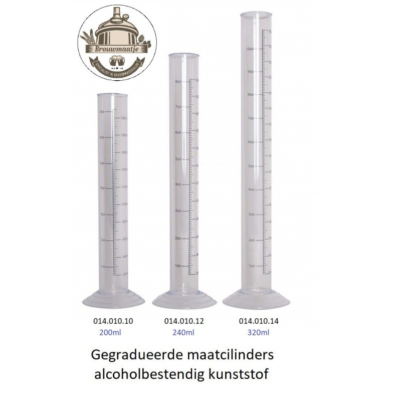 Breekt jouw testmaatglas ook wel eens? Dit eendelige, gegoten hydrometerglas is gemaakt van alcoholbestendige kunststof. Niet zo fragiel als glas en kan overal voor worden gebruikt: wijn, bier en vloeistoffen met hoog alcoholgehalte. Met stabiele basis en brede cilinder voor nauwkeurige meting.