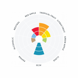 Aroma en smaak: zuur, rode appel en steenvruchten, met name perzik.