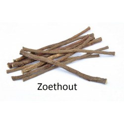 Onze zoethoutstokjes zijn zuiver en zonder toevoegingen. Zoethout is het bekendst als hoofdbestandsdeel bij de bereiding van drop en is 30 keer zoeter suiker. Maar in tegenstelling tot suiker is het niet slecht voor je gebit. Zoethout is niet alleen lekker maar ook gezond. Zoethout helpt tegen onder andere misselijkheid en maagpijn en is goed bij hoesten en keelklachten. Ook reinigt het kauwen op zoethout het gebit door de draderige structuur.