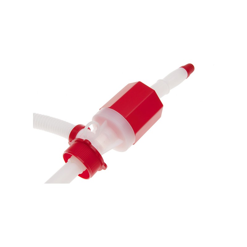 De handpomp is ontworpen als een hevelpomp en wordt geleverd met een 1380 mm lange afgifteslang.