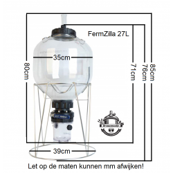 De FermZilla 27 l is een compact conisch gistingsvat dat thuisbrouwers een grote mate van controle in handen geeft. Dankzij de transparante zijwand, vervaardigd uit hoogwaardige pet, kan de brouwer te allen tijde volgen wat er in het gistvat gebeurt. Daarnaast heeft dit gistvat het grote voordeel dat de vergisting onder druk (max. 2,4 bar) kan gebeuren.