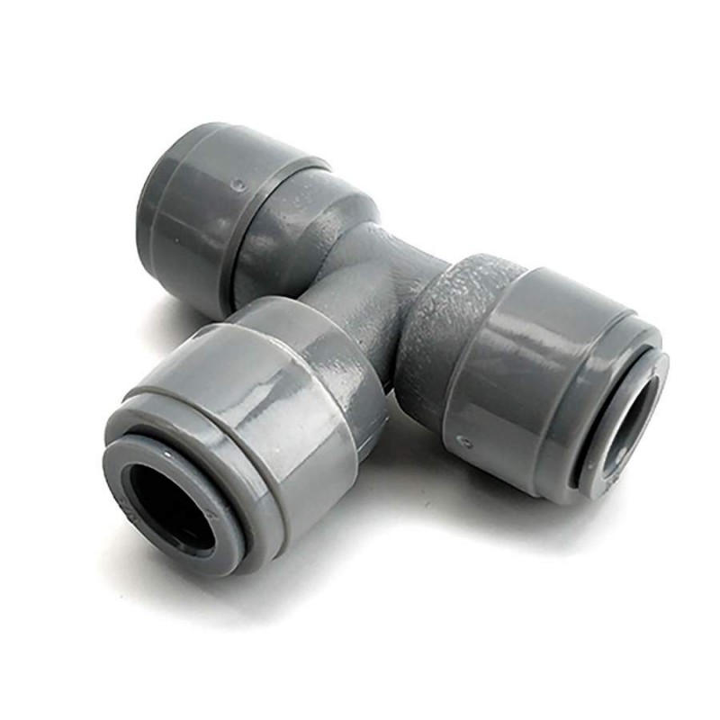 Deze T-koppeling van Duotight is ontworpen om een EVABarrier 9,5 mm slang (zie accessoires) te laten overvloeien in 2 andere EVABarrier 9,5 mm slangen (zie accessoires).