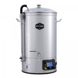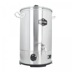 De Brew Monk “sparge water heater” is gemaakt uit roestvrij staal. De ketel haalt zeer snel de gewenste temperatuur, dankzij het verwarmingselement van 2500 watt. Handig: de indicatielampjes op de zijkant van de ketel geven aan wanneer het water de gewenste temperatuur heeft bereikt. Eenvoudig koppelen met een pomp kan dankzij de 1/2“ rvs bolkraan met slangtuit 13mm.