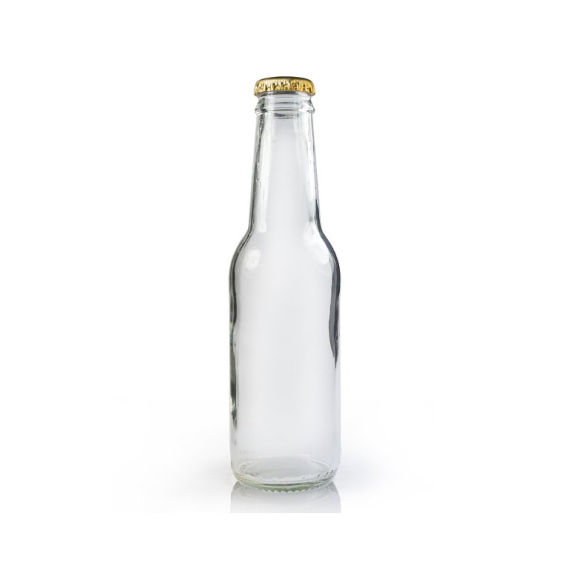 Transparante sap/frisdrankfles 200ml. sluiting 26mm kroonkurk.