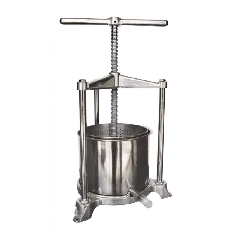 Tafelmodel fruitpers met dubbele inox fruitkorf met opvangbakje. Zeer degelijke constructie. Voorzien van schroefgaten voor montage op tafel. Ideaal voor het persen van kleinere hoeveelheden fruit, groenten, kruiden. Inclusief 10 cm pvc-slang.