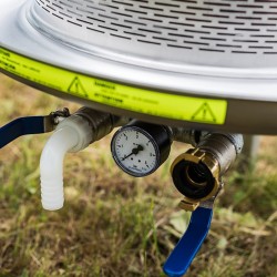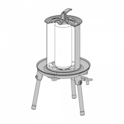 Moderne fruitpers die functioneert met een vulbaar centraal membraan. Aan te sluiten op een waterkraan. Door de waterdruk zet het rubberen membraan snel uit en wordt het sap door de geperforeerde buitenkant geduwd.