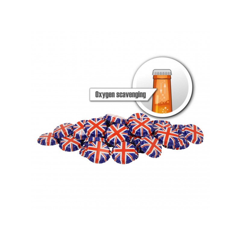 Kroonkurken 26 mm O2 absorberend Britse vlag- ca 500 st.