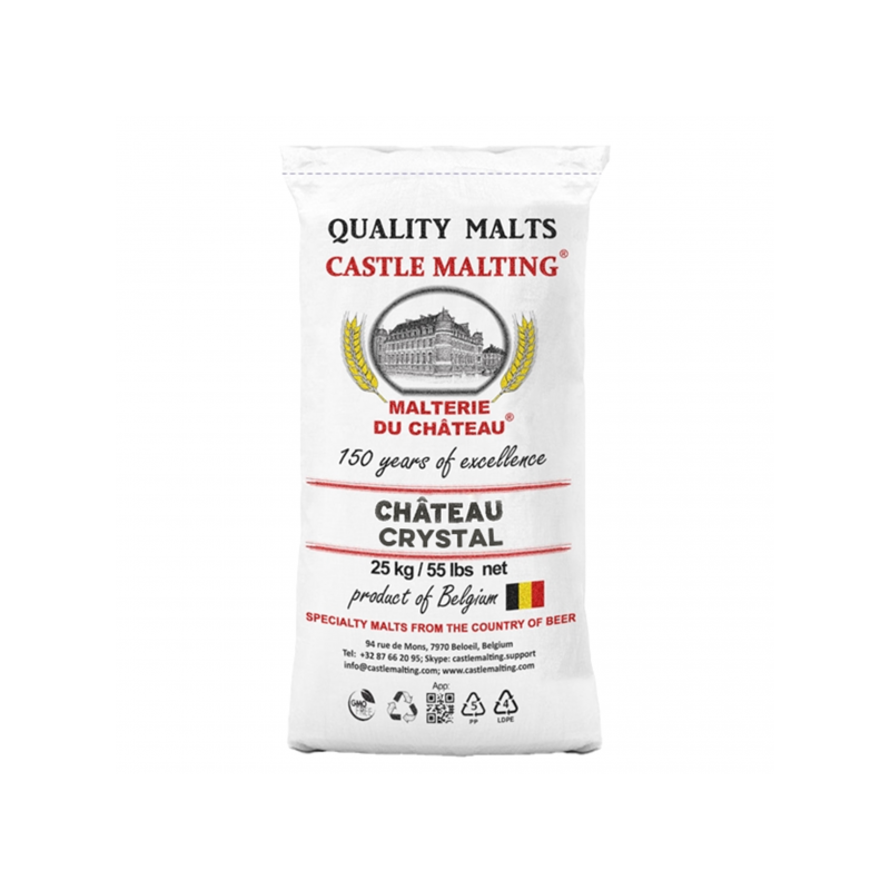 Crystal mout geeft een rijke moutige smaak en aroma aan amberkleurige en donkere lagerbieren. In vergelijking met andere, meer traditionele gekleurde mout heeft Crystal een hoger diastatisch vermogen en geeft het een zachtere, minder intense bitterheid. Bevat gluten.