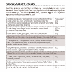 Belgische mout Castle Malting Chocolat. Geroosterd tot een temperatuur van 220°C, vervolgens zeer snel gekoeld zodra de gewenste kleur is bekomen.