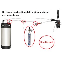 Het starterspakket gaat ervan uit dat je een Cornelius-vat met kogelvergrendeling en twee uitgangen met kogelvergrendeling loskoppelt van je automaat.