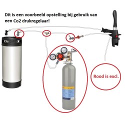 De slang wordt in één stuk geleverd en moet in drie stukken worden gesneden. Je bepaalt zelf hoeveel stuks je nodig hebt voor respectievelijk bier en gas en drain.