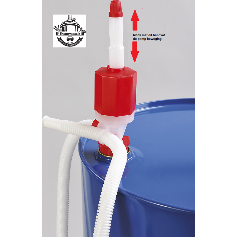 De handpomp is ontworpen als een hevelpomp en wordt geleverd met een 1380 mm lange afgifteslang.