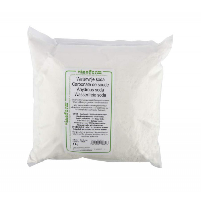 Watervrije Soda (natriumcarbonaat Na2CO3). Universele alkalische ontvetter en reiniger. Verwijdert ook biersteen. Kan gebruikt worden voor het reinigen van houten tonnen, losweken van etiketten enz. Niet gebruiken op aluminium. Dosis: 30 gr/10 l heet water.