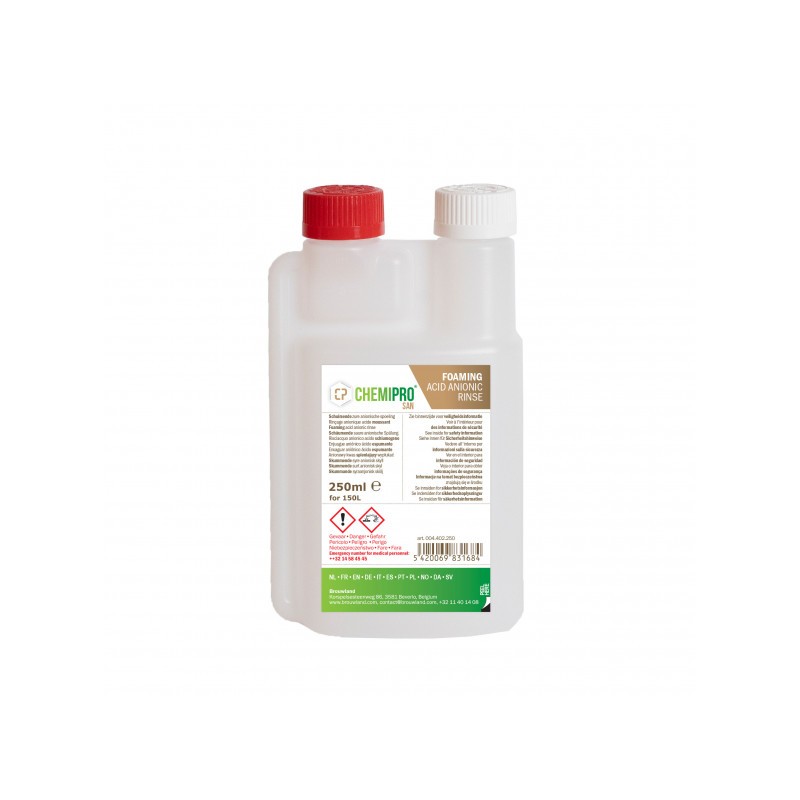 Een sterk schuimende, zure anionische laatste spoeling voor gebruik in de dranken- en voedingsmiddelenindustrie.