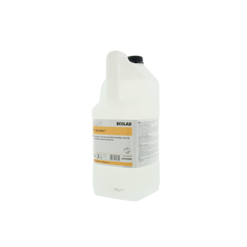 P3-ALCODES 5 liter Vloeibaar ontsmettingsmiddel op basis van alcohol. Ontsmettingsmiddel met snelle werking voor reeds gereinigde materialen. Toepasbaar in de voedingsmiddelenindustrie. Speciaal voor kleine oppervlakten en materialen.