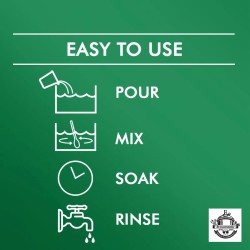 Gebruik 7,5-15 ml per liter water. Schrob of week 25-30 minuten met het mengsel (hoe kouder de oplossing, hoe langer de benodigde contacttijd). Spoel vervolgens af met water van dezelfde temperatuur.