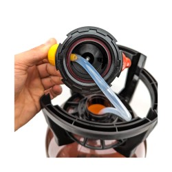 De 20 l Oxebar Amber petkeg wordt geleverd met een overdrukventiel tot 65 psi. Het vat is uitgerust met een siliconenslang met vlotter en korffilter die gemakkelijk los te maken is, waardoor je de kegs ondersteboven kunt stapelen zonder de koppelingen te verwijderen.