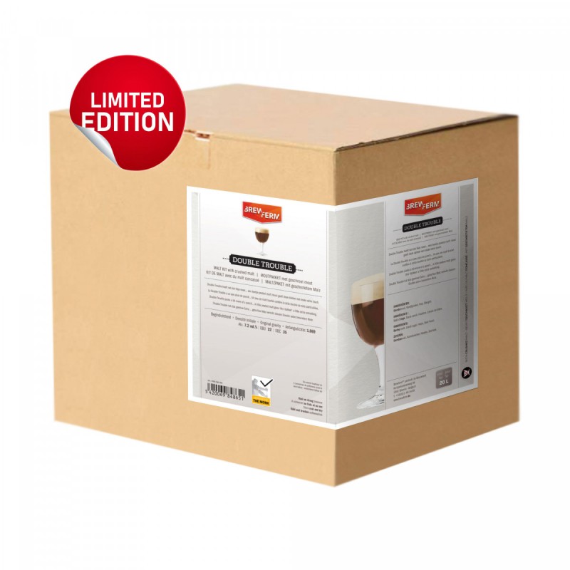 Double Trouble heeft net dat tikje meer… een beetje peated (turf) mout geeft deze dubbel een leuke extra touch en vult het moutige smaakpalet mooi aan.