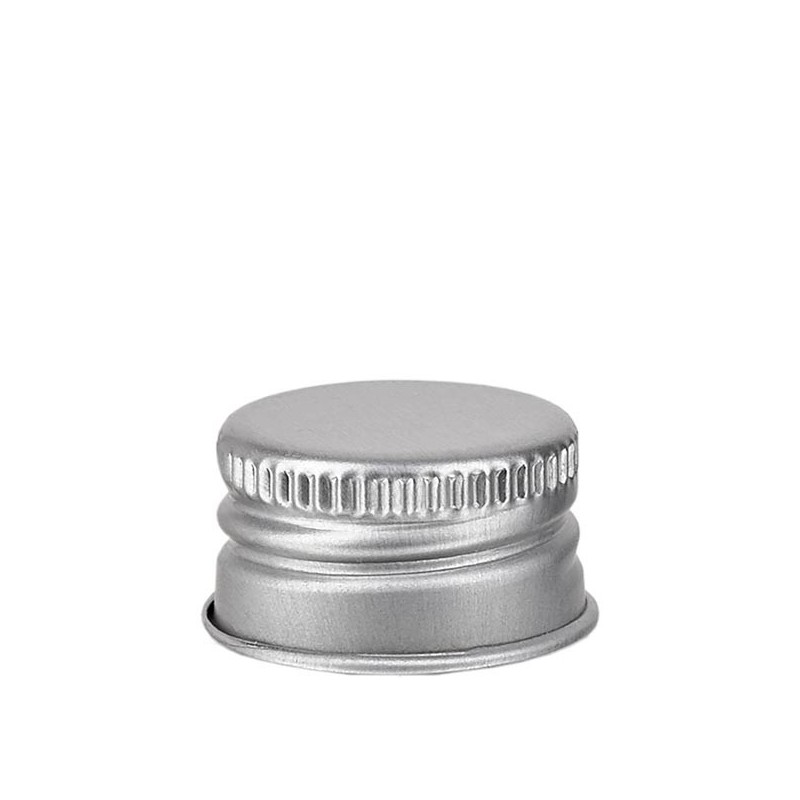 Schroefsluiting 18 mm zilver aluminium geribbeld met afgeronde rand en afdichtplaatje
