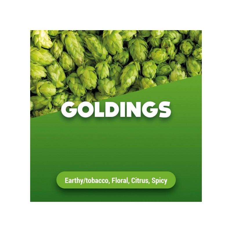 Deze hop heeft een zeer fijn aroma en wordt terecht de koning van de Engelse hop genoemd. Voor een originele IPA of traditionele Engelse bitter is er eenvoudigweg geen betere hop. Wordt vaak gebruikt voor dryhopping, maar kan door zijn hoger gehalte aan alfazuren ook als bitterhop gebruikt worden. Er zijn vele variëteiten Goldings, maar de beste flavour komt van East Kent. Het exacte alfazuurgehalte staat vermeld op iedere verpakking.