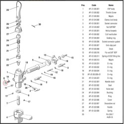 De kleine rode knop die de CO2-stroom op de iTap opent. Reserveonderdeel.