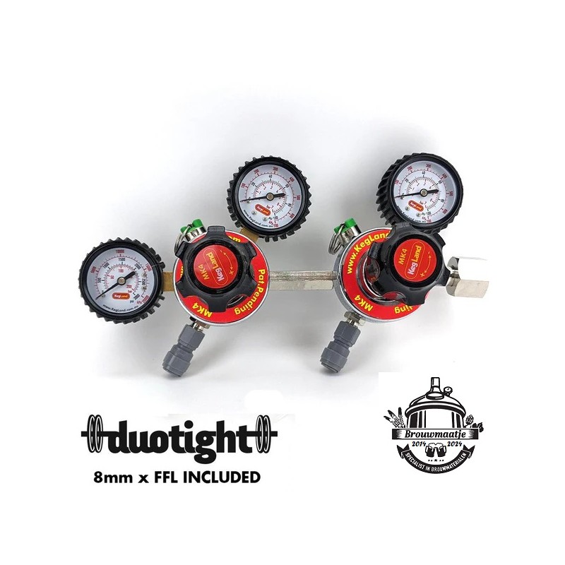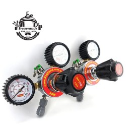 Wilt u de CO2-druk aanpassen voor meerdere bieren van de tap? Dan zijn er twee regelaars nodig voor een goede werking. Gebruik de MK4 dubbele drukregelaar om hem op uw CO2-fles te schroeven en doseer eenvoudig twee afzonderlijke drukken zonder het gedoe van het verwijderen van meters of het aanschaffen van extra hulpstukken.
