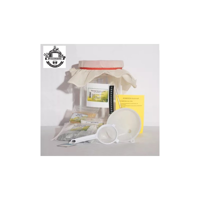 De startset ‘Komboecha’ voorziet je van alle basisbenodigdheden om zelf je eigen komboecha op te starten. Met deze set maak je 3 bereidingen van 2L.