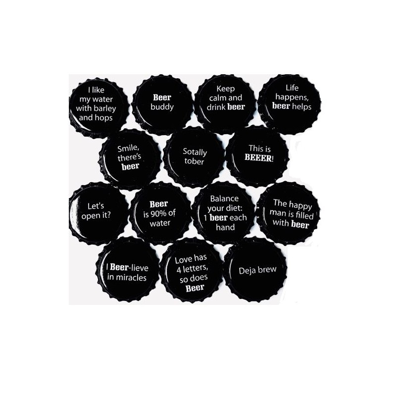 Kroonkurken 26mm met wel 40 verschillende leuke teksten.
