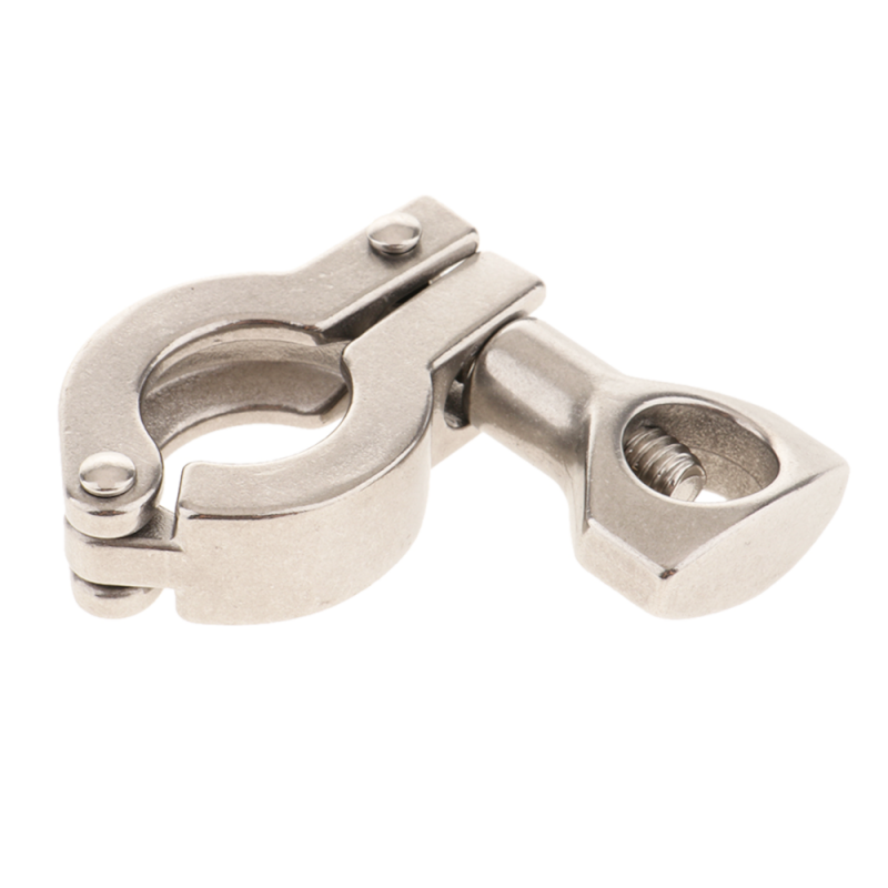 Roestvrijstalen klem die wordt gebruikt om twee 3/4" TC-flenzen en een pakking bij elkaar te houden.