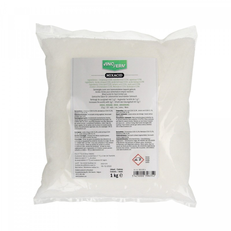 Een ideaal mengsel voor het evenwichtig bijzuren van sappen / wijnen. Bevat citroenzuur, wijnsteenzuur en appelzuur.(33,3%